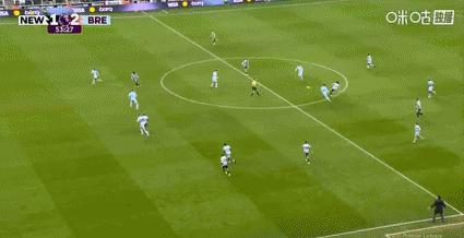 第54分鐘,紐卡右路傳中,禁區內巴恩斯頭球攻門,稍稍偏出左側門柱↓