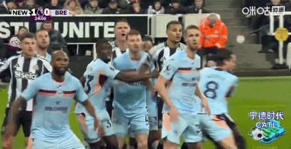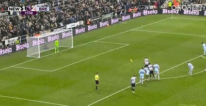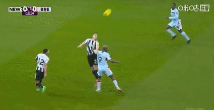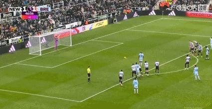 第79分鐘,紐卡反擊機會,禁區內吉馬良斯包抄,被卡約德背後放倒!主裁回看錄像判罰點球!吉馬良斯親自主罰命中,紐卡2-2扳平布倫特福德↓