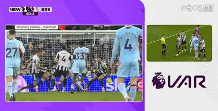 第45+2分鐘,墨菲禁區內手球送點,VAR確認判罰!布倫特福德贏得點球!伊戈爾·蒂亞戈點射破門!布倫特福德2-1反超紐卡↓