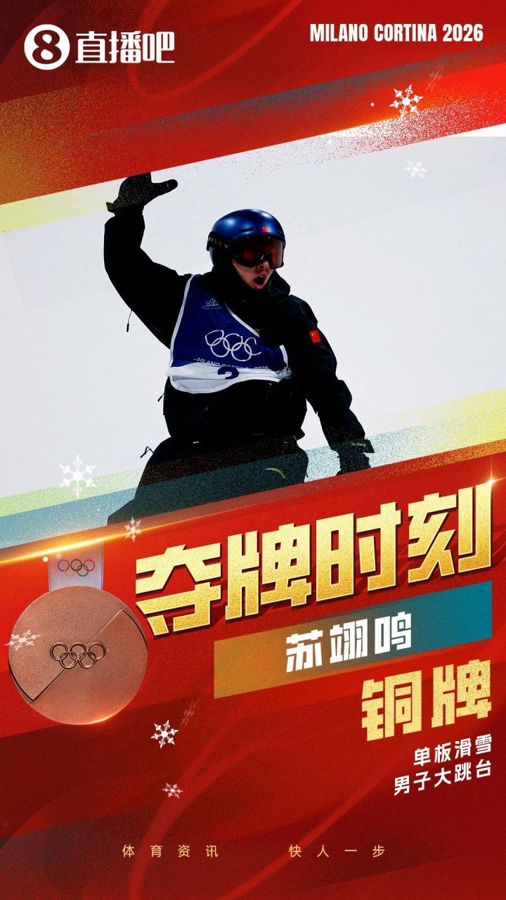 02月08日訊 米蘭冬奧會單板滑雪男子大跳臺決賽,蘇翊鳴第九個出場,總分168.5分獲得銅牌。日本選手木村葵來179.5分奪得金牌,木俁椋真171.5分奪得銀牌。