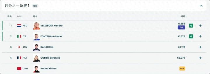 02月13日訊 米蘭冬奧會短道速滑女子500米1/4決賽,王欣然與法國選手碰撞,被判犯規無緣下一輪。
