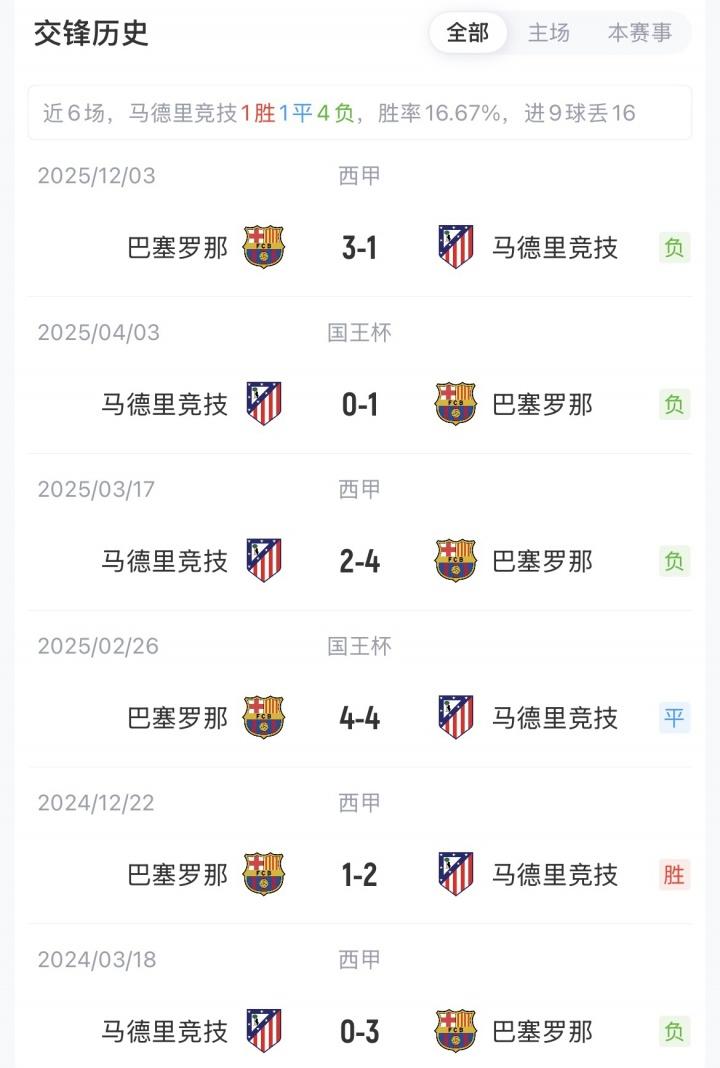 巴薩各賽事對馬競三連勝。上賽季國王杯半決賽,巴薩4-4、1-0淘汰馬競。