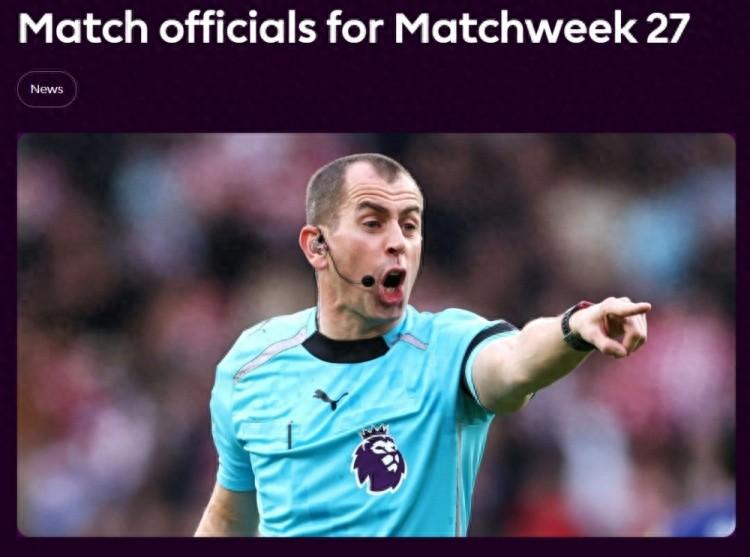 2月17日訊 英超官方公佈聯賽第27輪各場執法裁判,彼得·班克斯(上圖)執法熱刺vs阿森納,安東尼·泰勒執法諾丁漢森林vs利物浦。