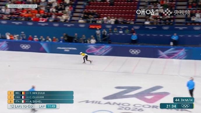 02月21日訊 米蘭冬奧會短道速滑女子1500米1/4決賽,中國選手張楚桐、公俐、楊婧茹出戰。