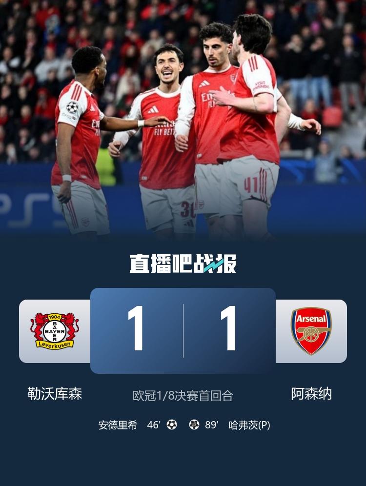 3月12日訊 北京時間3月12日凌晨1時45分,2025-26賽季歐冠1/8決賽首回合在拜耳競技場展開角逐,阿森納客場對陣勒沃庫森。上半場馬丁內利中框,下半場安德里希角球打破僵局,馬杜埃凱造點,哈弗茨89分鐘點射破舊主。最終阿森納客場1-1絕平勒沃庫森,槍手本賽季歐冠8連勝遭終結,雙方將於3月18日移師酋長球場進行次回合較量。