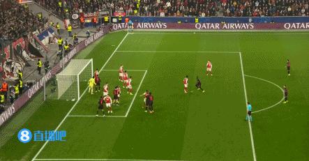 第83分鐘,槍手左路傳中,廷伯門前搶點頭球頂高。↓