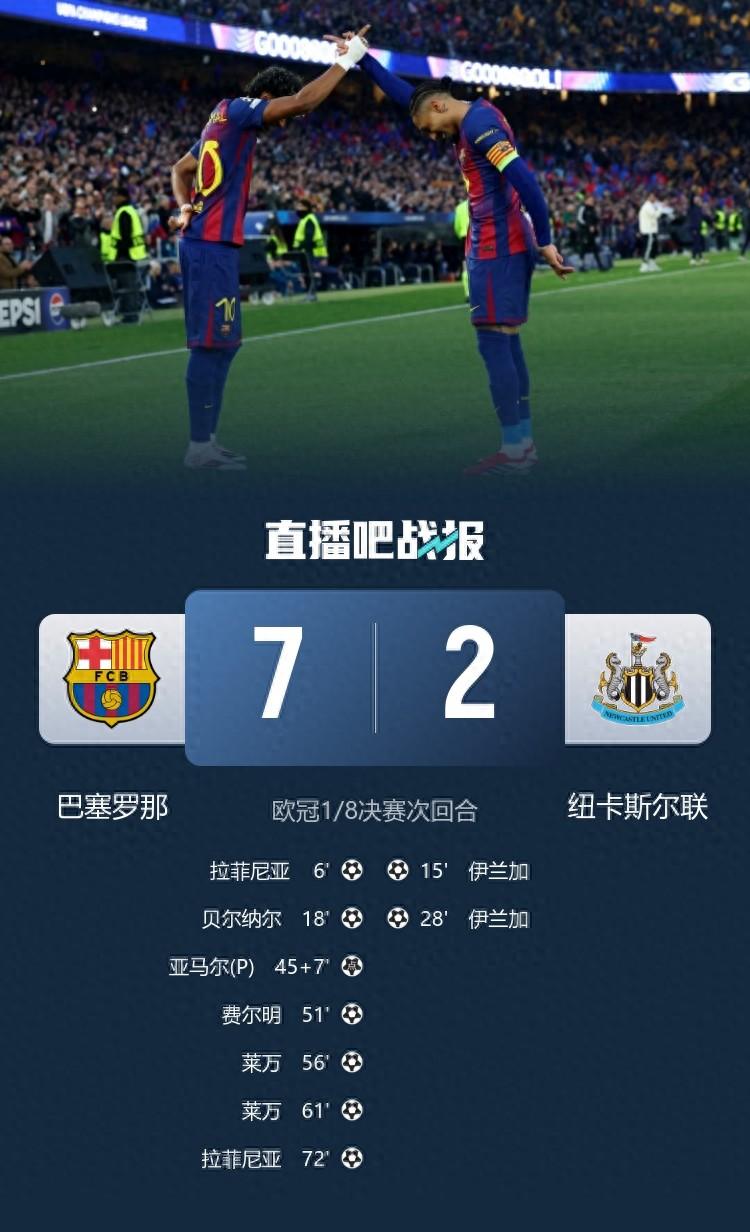 03月19日訊 歐冠1/8決賽次回合,巴薩7-2大勝紐卡,連續三年晉級歐冠八強。巴薩近5年歐冠戰績25/26賽季:8強?24/25賽季:4強23/24賽季:8強22/23賽季:小組賽21/22賽季:小組賽