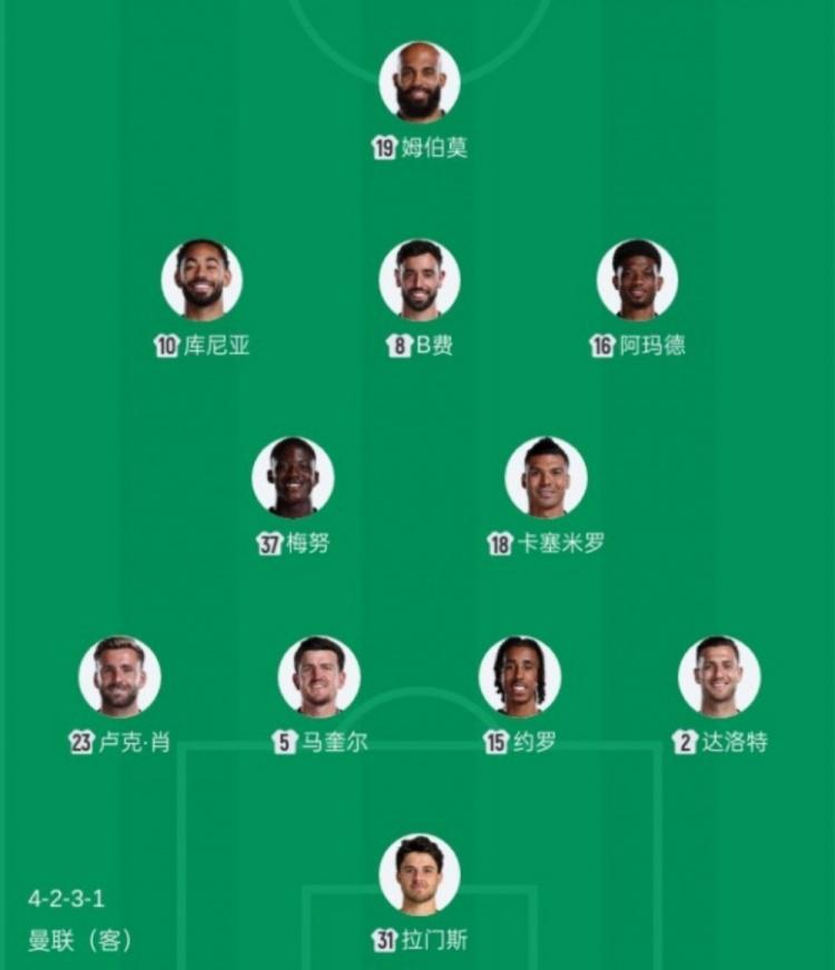 中場:庫尼亞、梅努、B費、卡塞米羅、阿瑪德