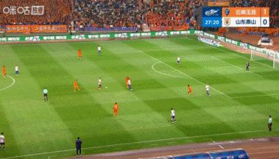 03月21日訊 中超第3輪,雲南玉昆vs山東泰山,比賽第28分鐘,克雷桑失誤被斷,玉昆連續流暢配合,奧斯卡推射破門,玉昆2-0領先泰山。