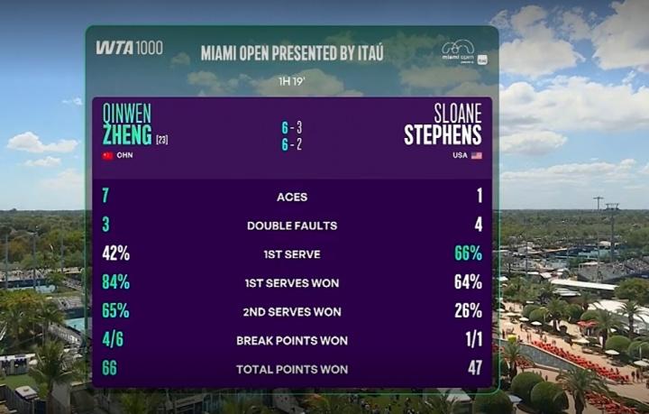 第二盤,鄭欽文第一局、第三局接連破發,取得4-0的領先。最終,鄭欽文6-2拿下第二盤,2-0戰勝斯蒂芬斯。