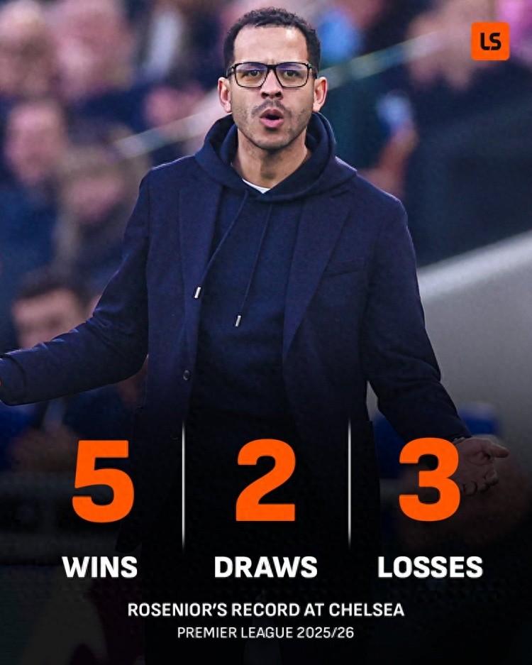 羅塞尼爾上任以來共率隊踢了10場英超比賽,戰績爲5勝2平3負,勝率僅爲50%。值得一提的是,在這個過程中,切爾西只面對過1次傳統big6球隊。
