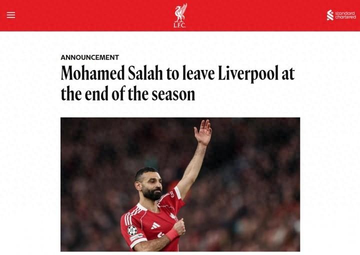 03月25日訊 薩拉赫在社媒發佈視頻,宣佈自己將在賽季末離開利物浦,利物浦官方隨即也發佈公告證明這件事。