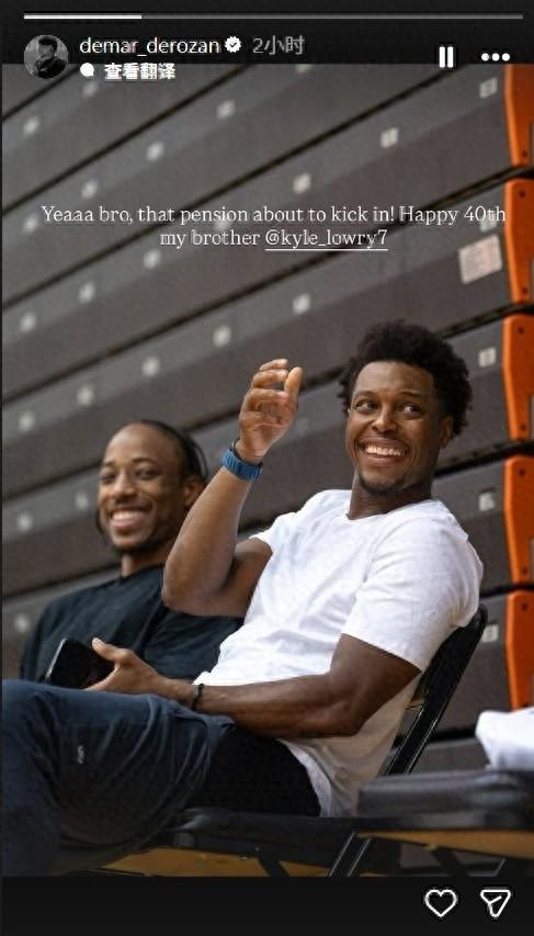 國王后衛、洛瑞前猛龍隊友德羅贊更新了個人Ins快拍祝賀洛瑞生日快樂,並配文:耶,兄弟!你的養老金馬上就要開始發放了!生日快樂!