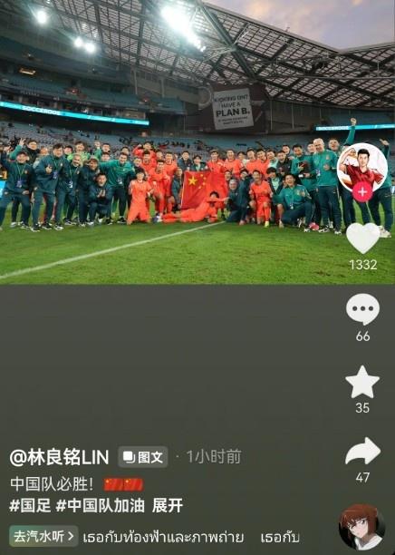 3月27日訊 在今天下午進行的FIFA國際系列賽中,國足2-0擊敗庫拉索。賽後,國腳林良銘在個人社交媒體中曬出了全隊大合照,並寫道:中國隊必勝!
