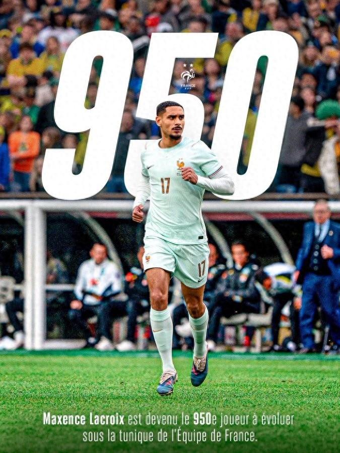 法國隊寫道:“首秀時刻,他是歷史上第950位披上法國隊戰袍的球員,也是德尚任內提拔完成首秀的第89名球員。”