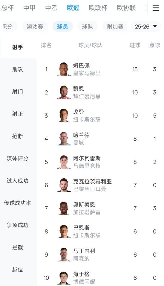 值得注意的是,數據統計顯示,本賽季歐冠到目前爲止,射手榜和助攻榜前兩名都是這兩隊的球員(紐卡的安東尼·戈登與凱恩並列射手榜第二)