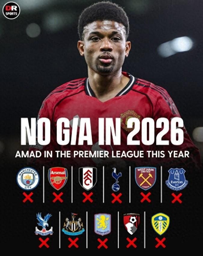 據統計,阿瑪德在2026年出場的11場英超比賽中還從未參與進球,本賽季26場英超也只貢獻了2球2助攻。
