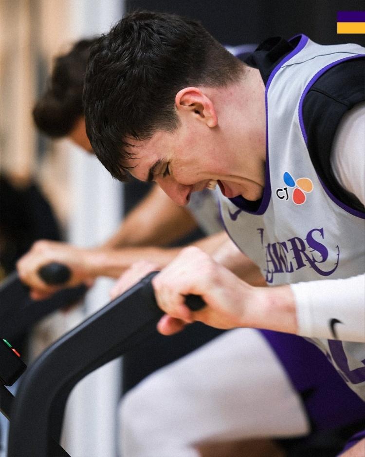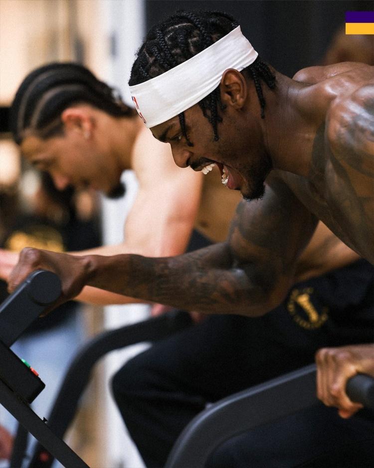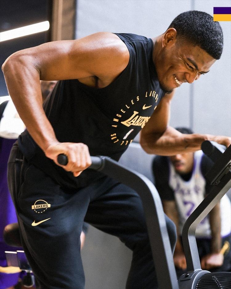 4月16日訊 今日,湖人官推曬出一組球隊訓練照。