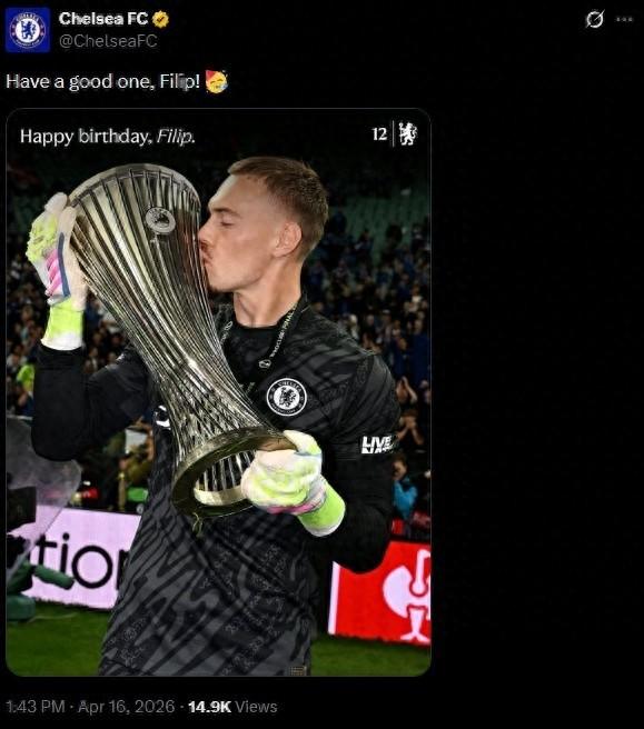 4月16日訊 今天是切爾西門將約恩森的24歲生日,俱樂部官推發文爲他送上祝福。