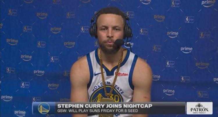 主持人:恭喜你,斯蒂芬。這大金鍊子跟你很搭。跟我說說德雷蒙德·格林吧,他是一名真正的勇士。這場比賽他給你們帶來了什麼?