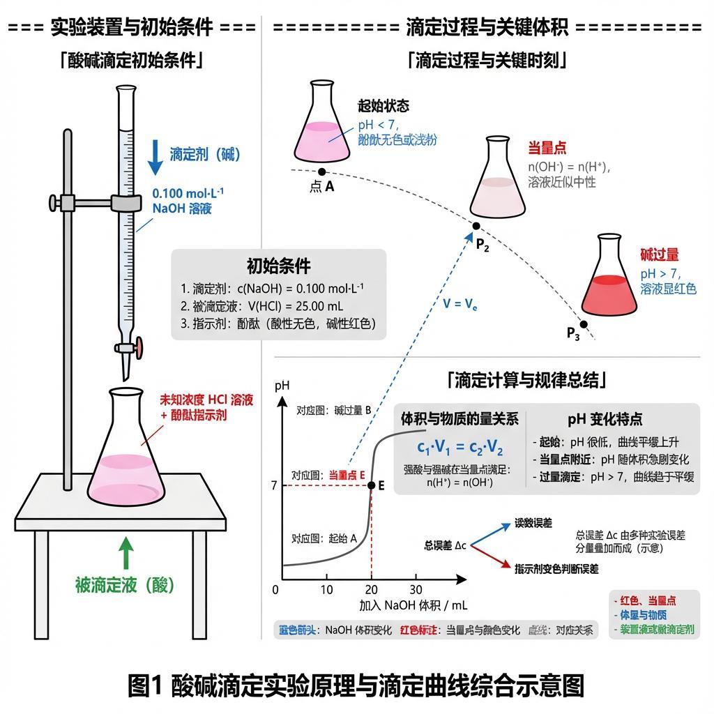我首先要求模型生成一張“酸鹼滴定實驗原理與滴定曲線綜合示意圖”。在上個版本的 Nano Banana 中,這類有較多漢字且考察理解能力的教學示意圖絕對無法是完成的,通常你會得到滿是亂碼的座標軸和錯亂的玻璃儀器。但這次 Nano Banana Pro 交出的答卷讓人震驚。如實測圖所示,模型精準地繪製出了滴定管、錐形瓶等實驗裝置,以及右側的滴定曲線等,都與要求相符。唯一可惜的是,圖片中的文字標註,多少還是有輕微的模糊和亂碼。
