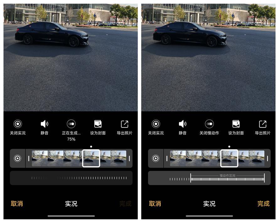 有意思的是,拍攝的“實況”照片還可以轉換爲慢動作的選項,可以將一些精彩的瞬間變成慢動作的實況效果。