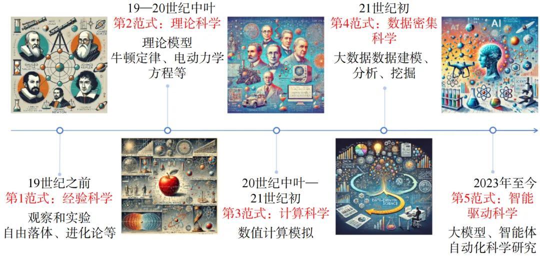 人工智能,特別是大模型技術,正在催化一場名爲“第5科研範式”的根本性變革。這一範式的核心是從“人類主導”轉向“人機協同”,它重構了科研全流程,旨在突破人類認知侷限,極大提升科研效率與創新能力,最終塑造一個人類與AI各展所長、協同進化的未來科研新生態。