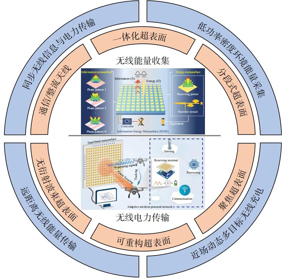 爲解決物聯網設備面臨的供電瓶頸,超表面技術憑藉其強大的電磁波束調控能力,正推動無線輸能技術向高效率、小型化和智能化方向發展。文章系統闡述了其在能量發射、接收、能信同傳以及動態可重構四大方面的最新進展: