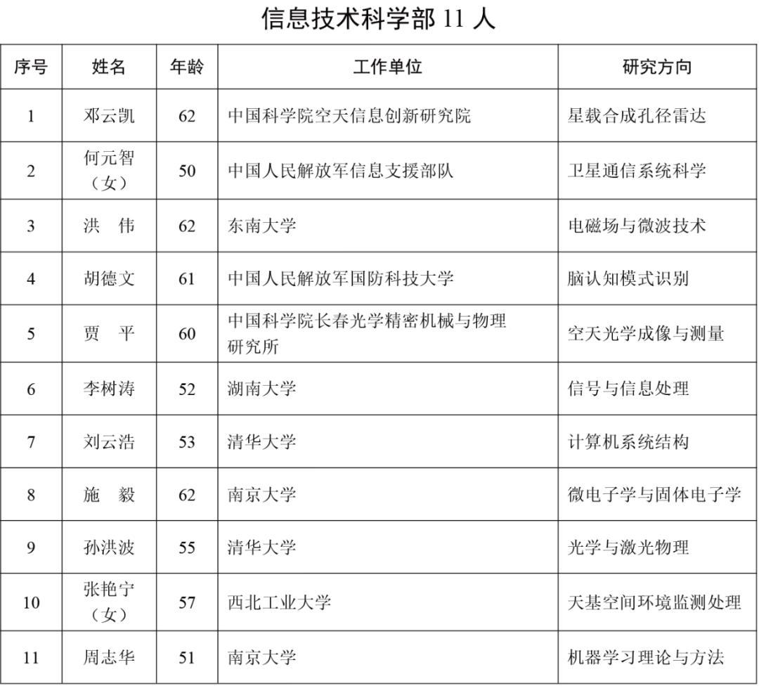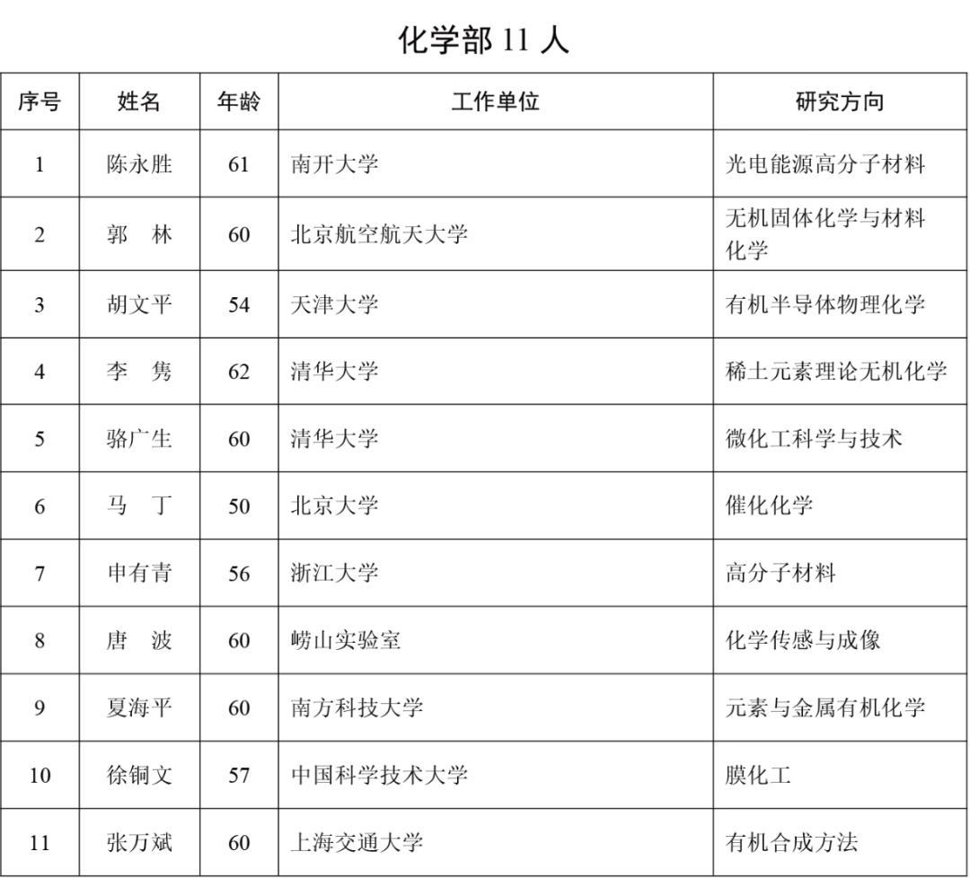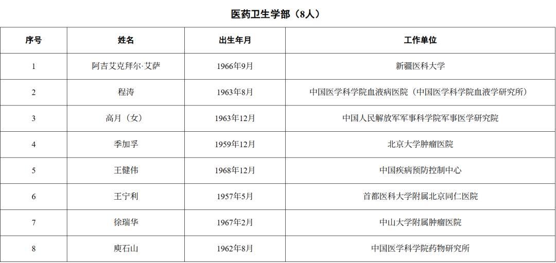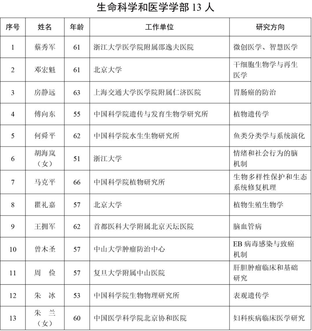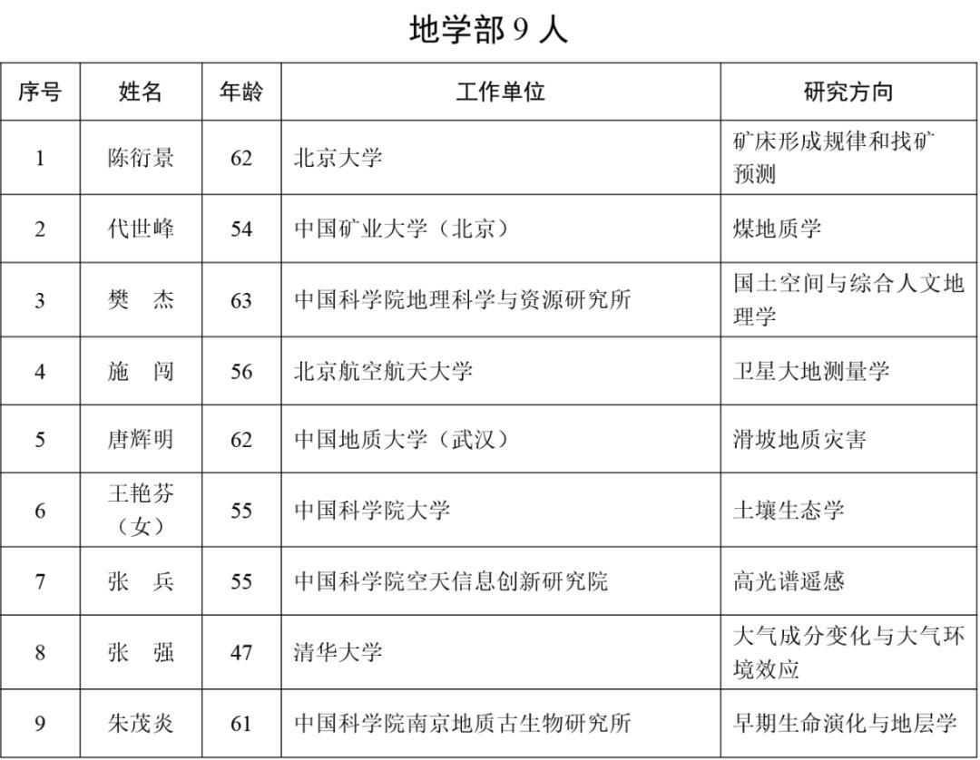 2025年新當選中國科學院院士名單