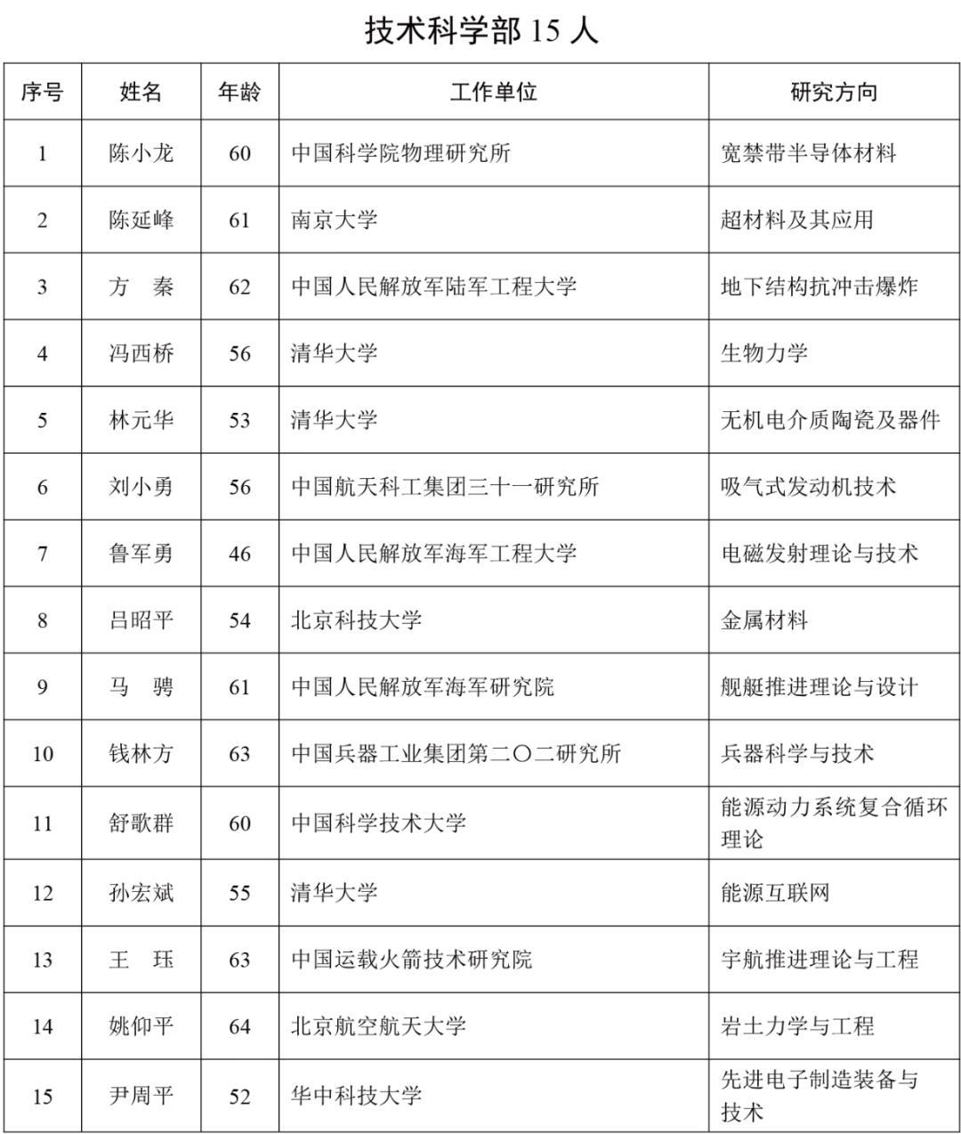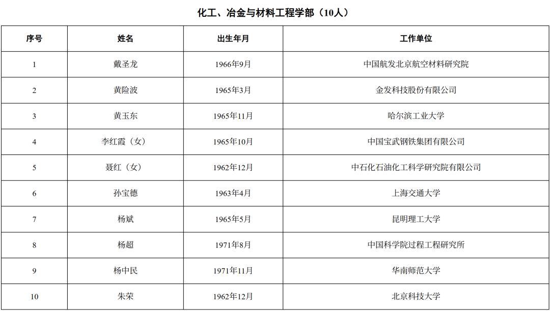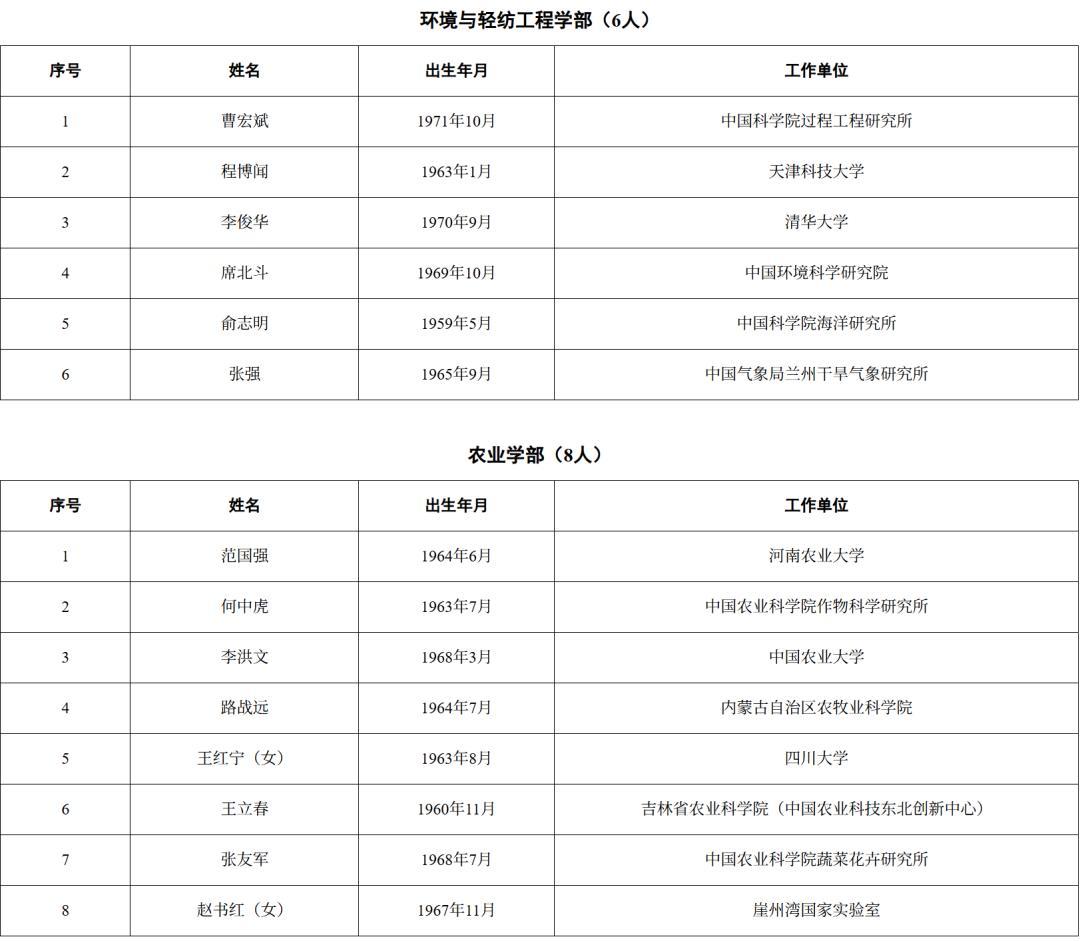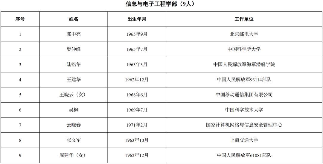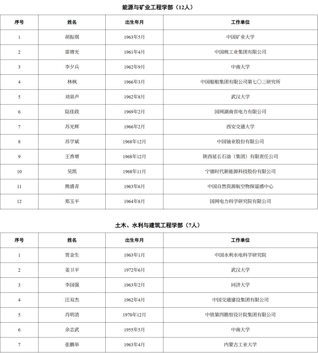 2025年新當選中國工程院院士名單