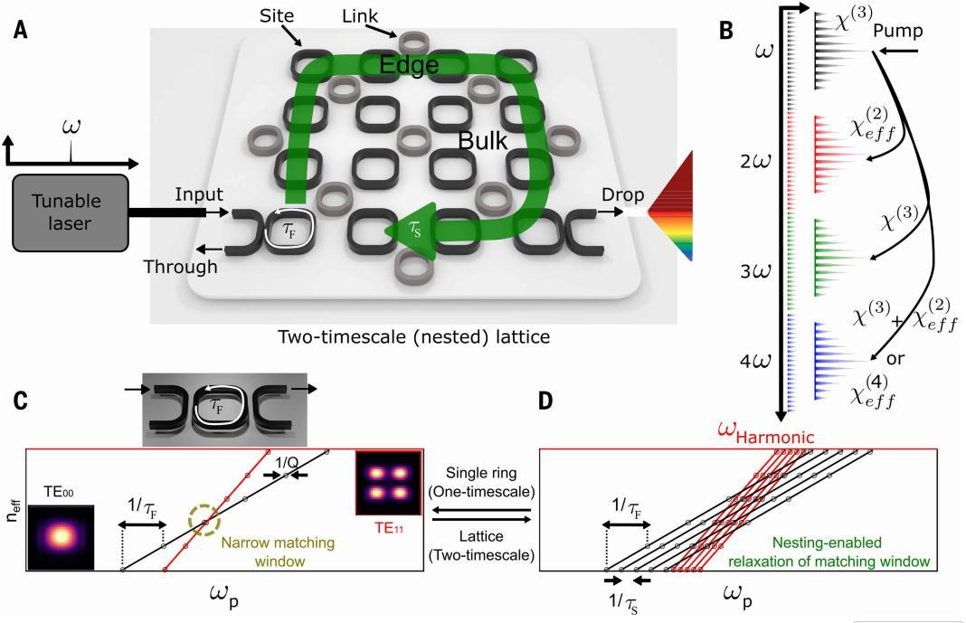其次,本次方案具有極強的普適性。它雖然是在氮化硅平臺上驗證的,但其核心思想“通過拓撲陣列結構來放寬相位匹配條件”並不依賴於特定材料。這一設計原理可以推廣到鈮酸鋰等其他熱門的光子學平臺。