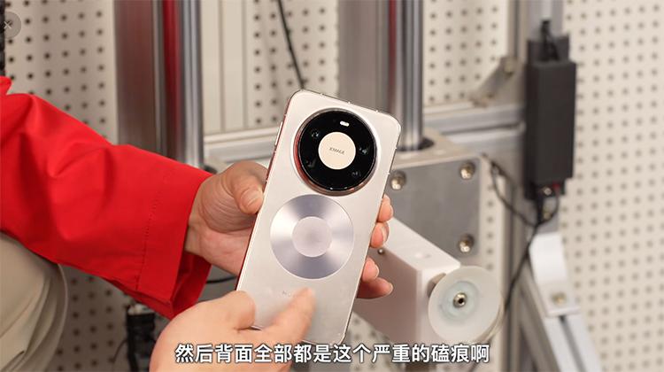 來到1米高度背面跌落測試,小米在此前已摔碎背屏,所以不參加,但這回iPhone參加了,不過右下角玻璃直接摔碎,退出了比賽。本項目僅有華爲通過了測試。