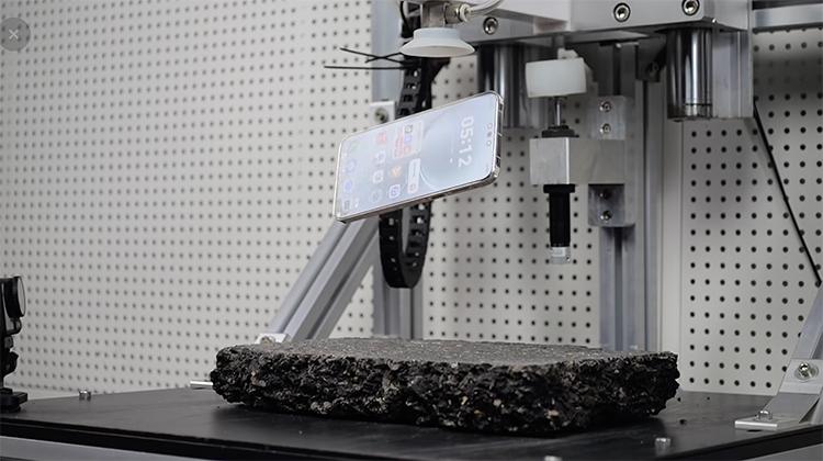 然後高度升到1.5米,在摔到最硬的青石板時,小米的正面雖然正常,但背屏摔出了壞點。而iPhone正面外屏直接摔碎,退出了比賽。