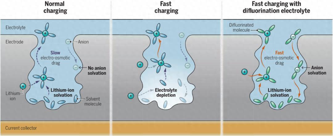 爲此,他們設計了一種雙氟化電解質,這種電解質能夠巧妙調節離子和溶劑之間的關係。