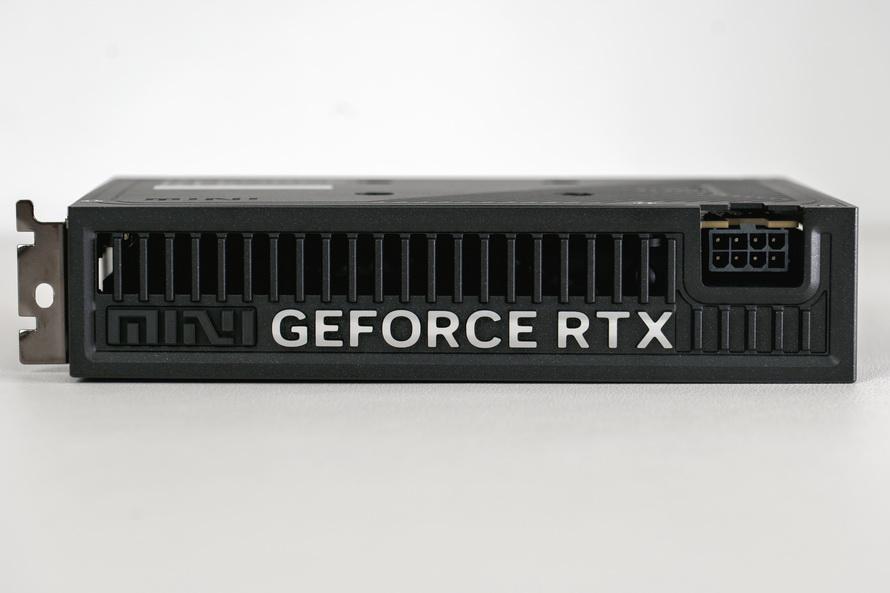在iGame RTX 5060 Ti Mini側面,上面是“MINI GEFORCE RTX”,其中“MINI”採用了ARGB燈效設計,在側面的一角還有電源接口,考慮GeForce RTX 5060 Ti顯卡功耗,使用的是單8pin電源接口設計,既滿足供電需求,又能更好兼容舊款電源。
