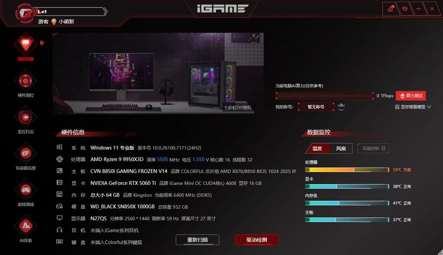 從性能上看iGame GeForce RTX 5060 Ti Mini OC 16GB,GPU加速頻率達到了2.63GHz,在DLSS 4支持下游戲幀速是上一代翻倍不是夢,在16GB大顯存加持,運行推理形式AI任務也遊刃有餘,更重要的單風扇小巧設計,既滿足散熱需求,又能安裝到mini ITX機箱當中,小主機用戶也能獲得滿血的性能體驗。而且iGame自助星球軟件通過AI,大大簡化超頻、燈光控制、切換電腦工作模式,讓用戶能夠更專注於體驗遊戲、搞創作當中。