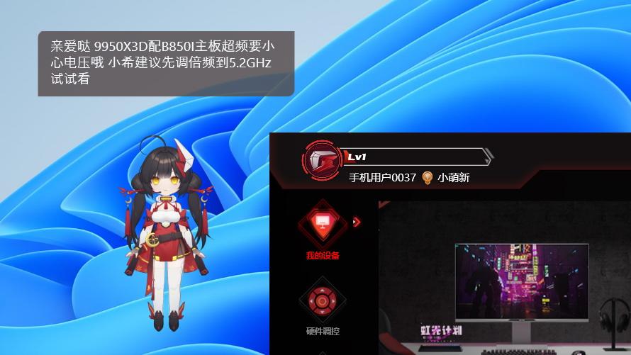 除了上述功能外,iGame自在星球還緊貼AI熱潮,推出了AI品牌頭像生成功能與AI桌寵柒小希。尤其值得一說的是柒小希,它除了提供基本陪伴、語音交互以及支持音樂/冒險模式切換,還對DIY功能進行深度綁定。用戶可以通過命令,讓柒小希幫忙超頻CPU,或是通過命令,讓柒小希把電腦切換成遊戲模式,提升性能表現,至於控制燈光效果也是OK的。有了柒小希,用戶就能通過自然語言命令去完成超頻、燈光控制等繁瑣操作,盡享DIY樂趣。