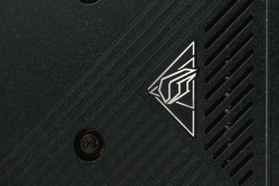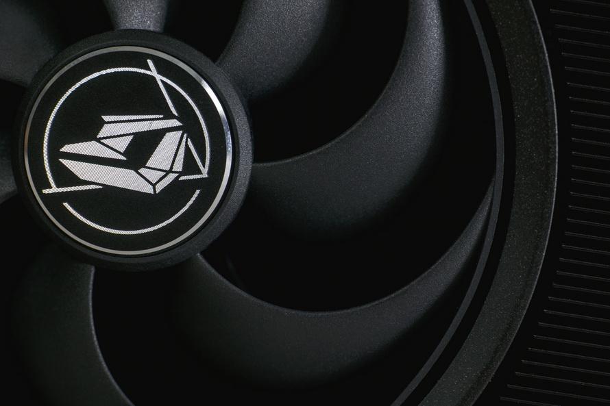 而且爲了提升質感,顯卡表面不是使用簡單的黑漆,而是從“黑夜裏的繁星”獲取了靈感,通過反覆調試漆料色澤、金屬粉和顆粒的比例,在啞光黑底色基礎上點綴了金屬微粒,在顯卡上呈現出星空的效果。