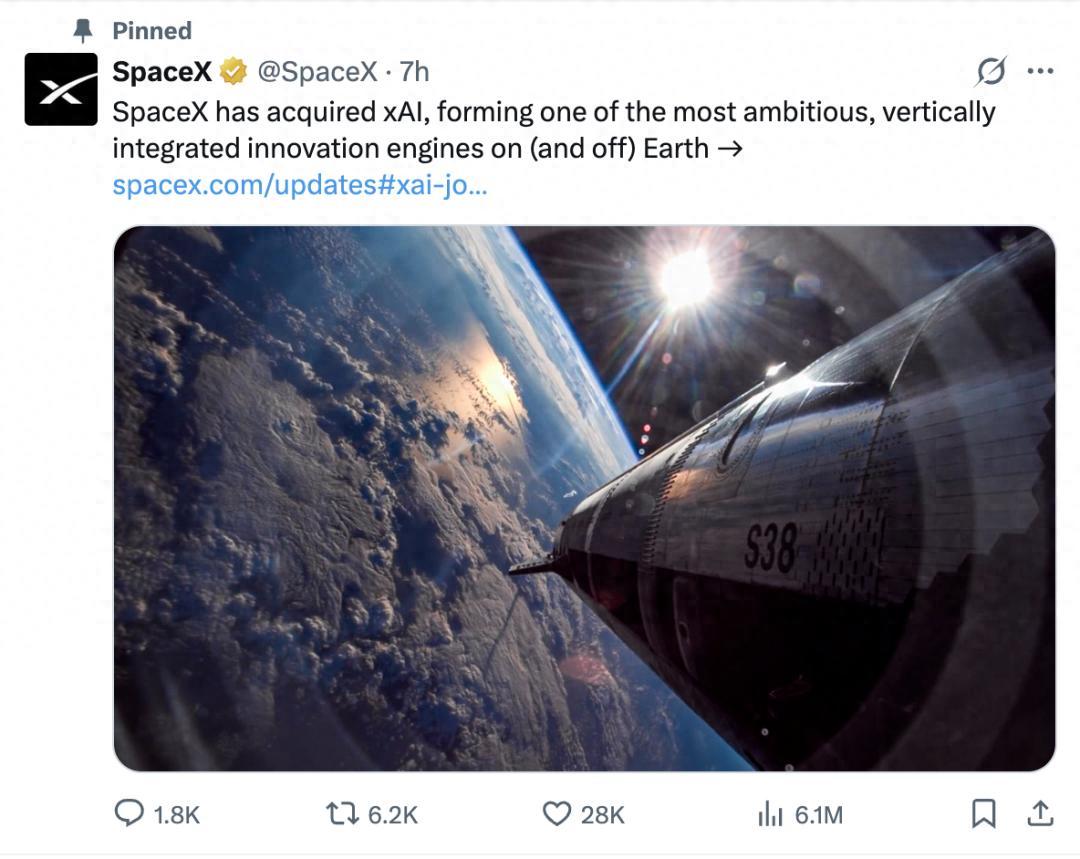 當地時間 2 月 2 日,SpaceX 正式宣佈收購 xAI,合併後的實體估值約 1.25 萬億美元,一舉成爲全球估值最高的私人公司。