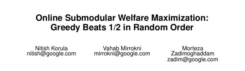 “在線次模福利最大化”(online submodular welfare maximization)是一個經典的經濟學與算法問題,研究如何在需求未知且逐個出現的情況下,例如在實時廣告競價或雲計算資源分配中,將資源分給不同的人以最大化整體滿意度。這裏的“次模”指的是邊際效益遞減,即擁有的越多,新獲得的價值就越低。