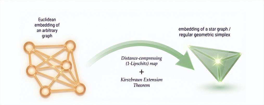 在計算幾何領域中,針對斯坦納樹問題(如何以最短路徑連接多個點),存在一個關於“單純形是最佳圖嵌入結構”的猜想。Gemini 發現,解決問題的關鍵實際在於希爾伯特空間映射中的基爾斯布勞恩(Kirszbraun)擴展定理,這個定理通常用於分析函數的平滑性(Lipschitz 連續性),人類研究者此前往往認爲它過於深奧而不予考慮。但 Gemini 正是藉助這一晦澀的數學工具,成功完成了從任意圖嵌入到星形圖嵌入的形式化映射證明。