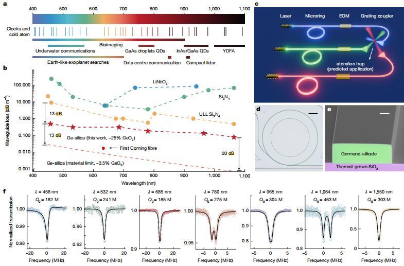 圖丨覆蓋紫外至近紅外波段的超高 Q 值摻鍺二氧化硅器件(來源:Nature)