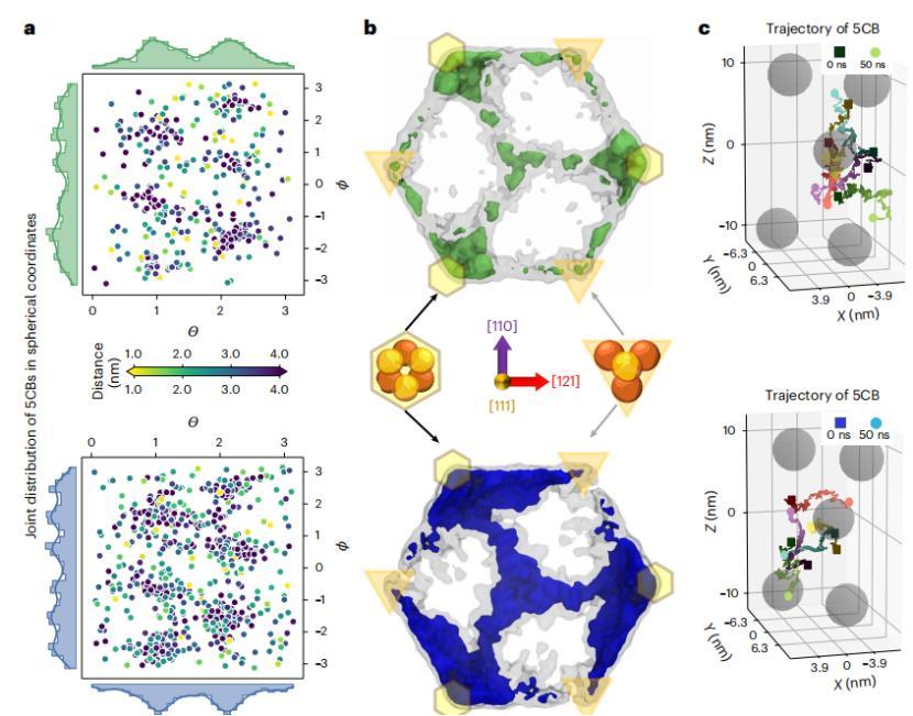 在建造超晶格的期間,並非所有液晶分子都被趕走了。而是一旦液晶分子被留在“城市”的街道和廣場裏,也就是納米晶體之間的空隙裏。這些被困在空隙裏的液晶分子,就像“城市”裏流動的居民。