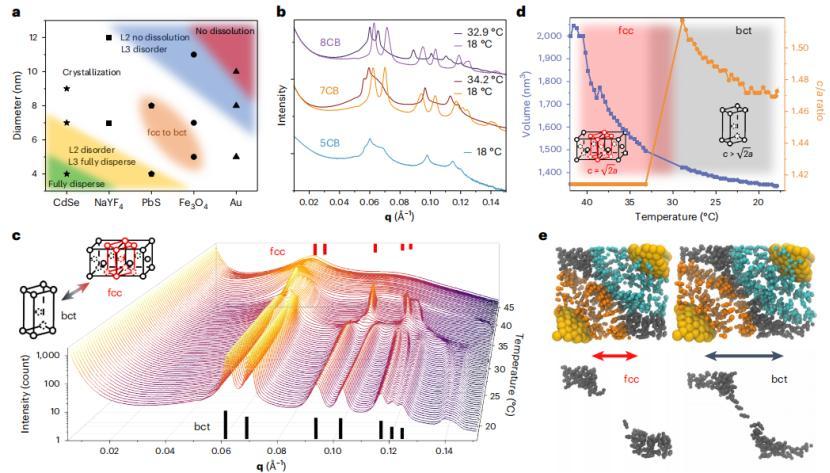 本次研究的巧妙之處在於,團隊讓液晶分子來充當協調員和填充劑,爲納米晶體穿上了特製的外套,這種外套與液晶分子的關係很好。當混合物處於高溫也就是液晶處於無序狀態的時候,納米晶體們會均勻地分散在液晶海洋裏。