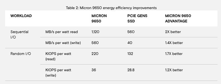 美光還提到,兩個系列的SSD均採用PCIe Gen6.2 1x4、NVMe 2.0接口,並基於業界首款應用於數據中心SSD的第九代TLC NAND閃存而打造,因而實現了恐怖的讀寫速度。而且其能效比也顯著提升,在25W功耗下,性能可達到PCIe Gen5 SSD的2倍,並且液冷、風冷都支持。