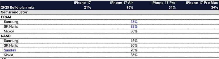 去年曝光的一張圖片顯示,iPhone 17系列的NAND供應商有4家,分別是三星、SK海力士、閃迪和鎧俠,其中鎧俠的佔比達35%,是4家供應商中最高的,比SK海力士還要高出5%,這說明鎧俠在蘋果供應鏈裏的地位非常重要。
