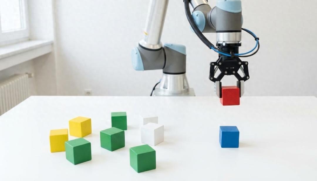 想象這樣一個場景:一個機器人面前的桌上擺着一堆物體,其中包含紅色積木和藍色積木,此時,如果給出讓它“把紅色積木疊到藍色積木上”的指令,它是否能順利執行?
