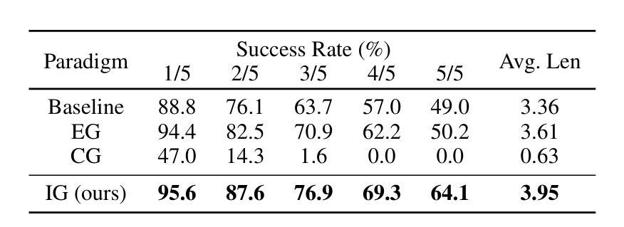 凝視區域的標註藉助了 Grounding DINO 這一開放詞彙檢測模型(open-vocabulary detector),大部分數據可以通過零樣本(zero-shot)方式直接標註,對於機器人場景中一些較爲罕見或複雜的物體,團隊則進行了定製化微調。消融實驗證實,預訓練階段對泛化能力的提升是顯著的。移除預訓練後,5 步連續任務的最終成功率從 64.1% 下降至 58.2%。