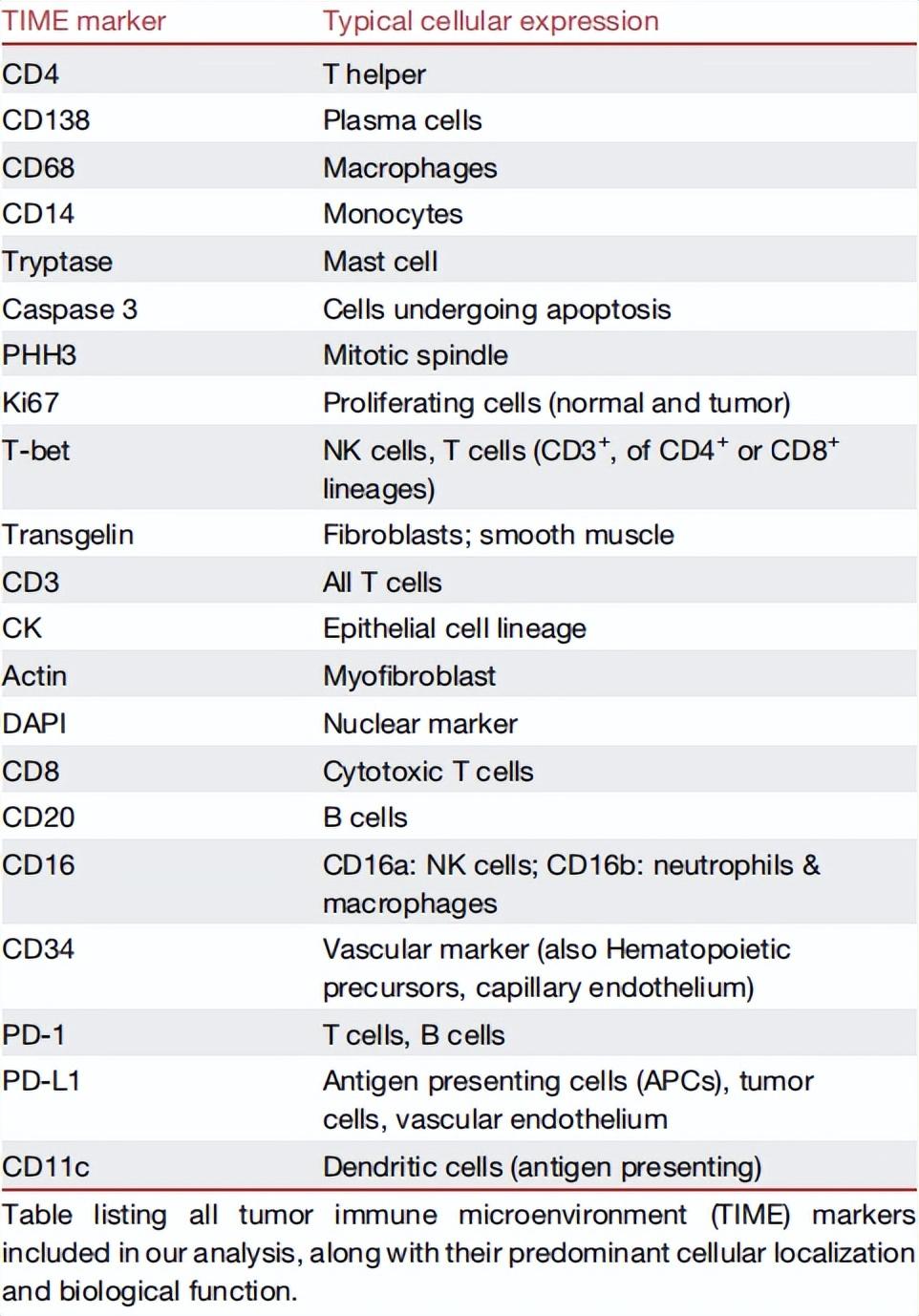 表丨本研究中使用的 TIME 標記物及其細胞表達(來源:Cell)