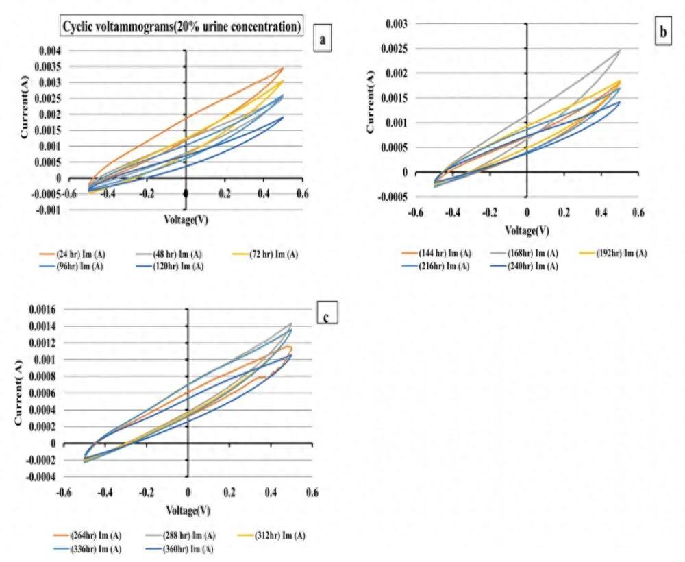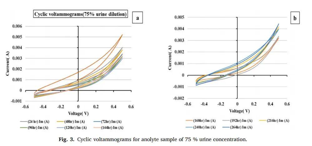 結果很明顯:尿液濃度越高,發電量越大。75%濃度的那組,電壓最高衝到了432.9毫伏,遠遠超過20%濃度的73.2毫伏。